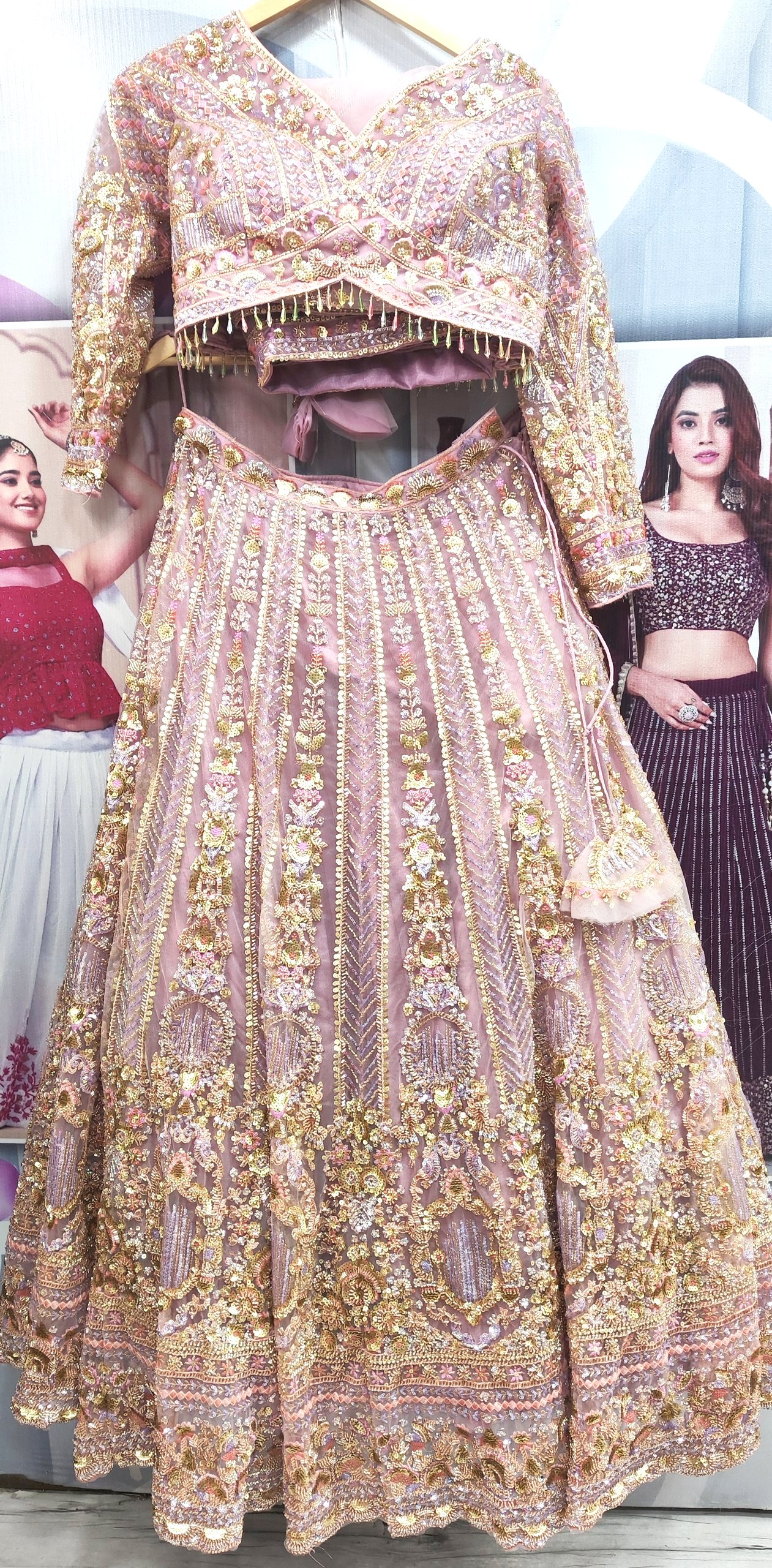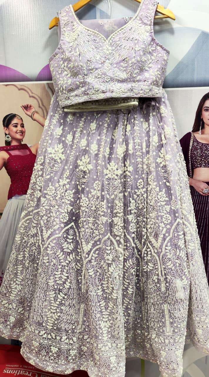 Lavender Light Pink Heavy Party Wear Embroidered Lehenga