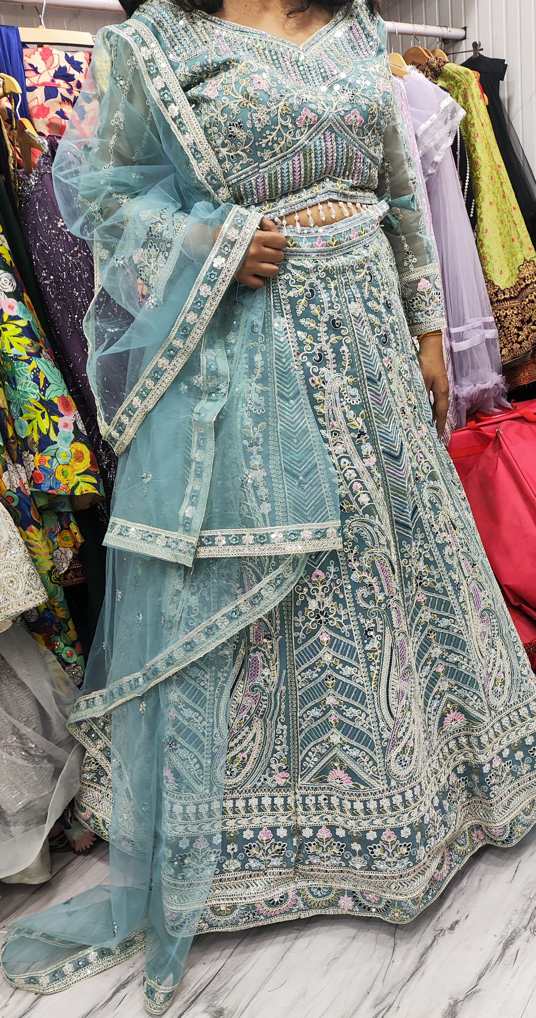 Firoji Light Pista Green Heavy Embroidered Lehenga