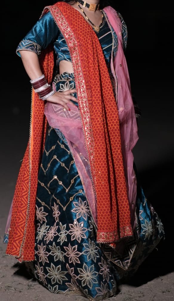 Green Velvet Light Lehenga