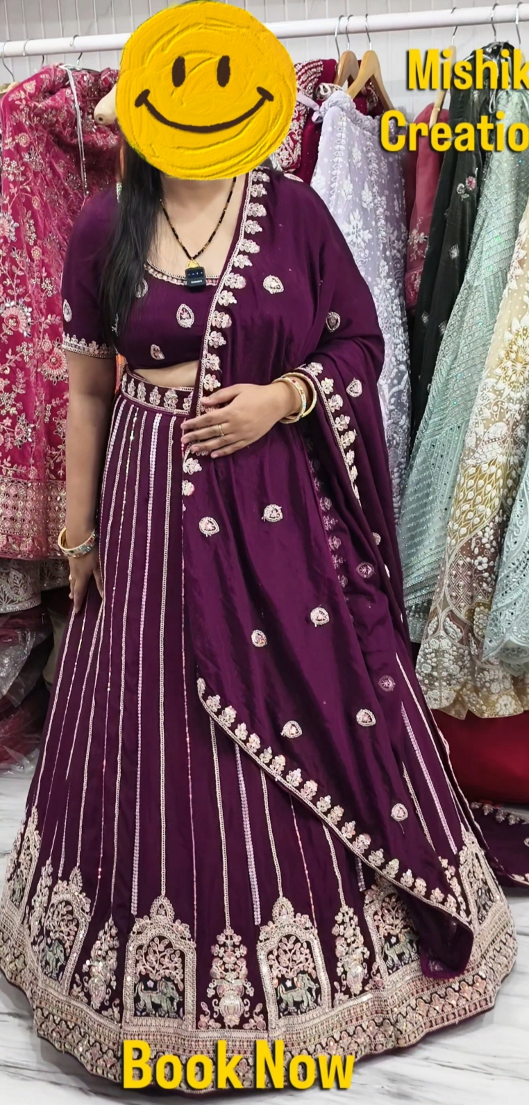 Wine Purple Party Wear Lehanga