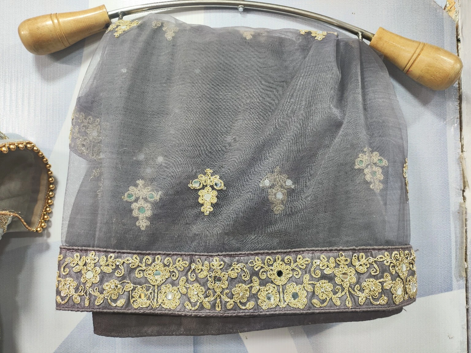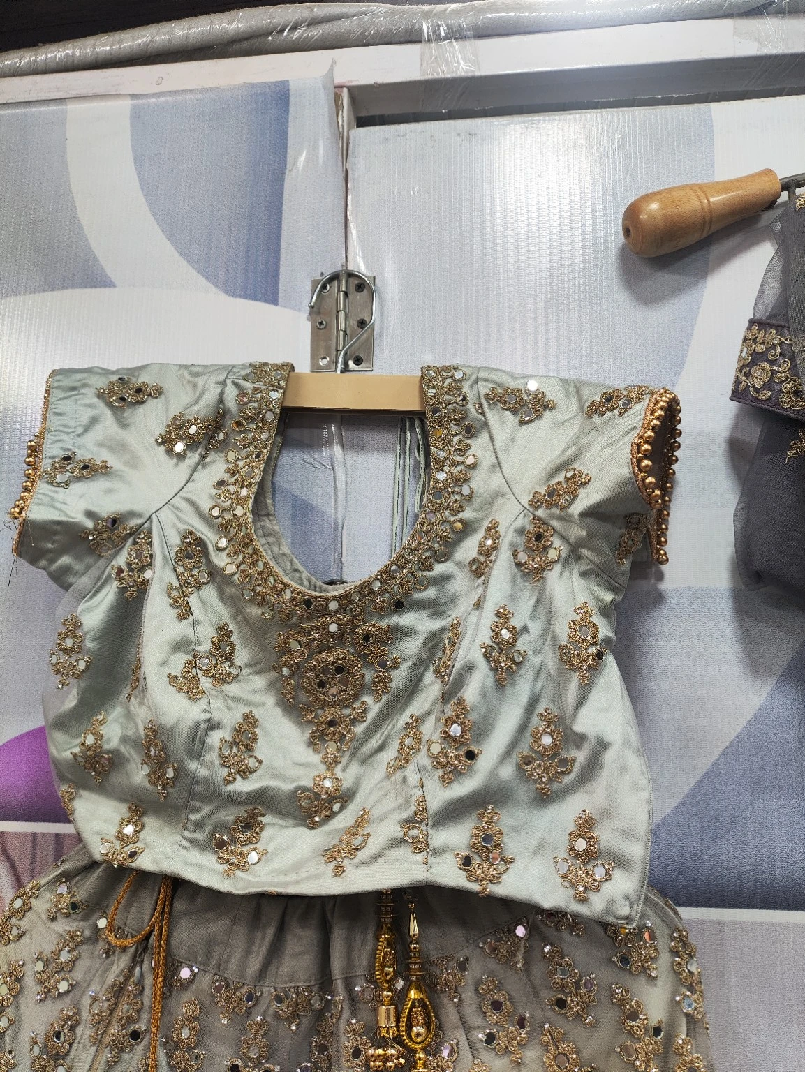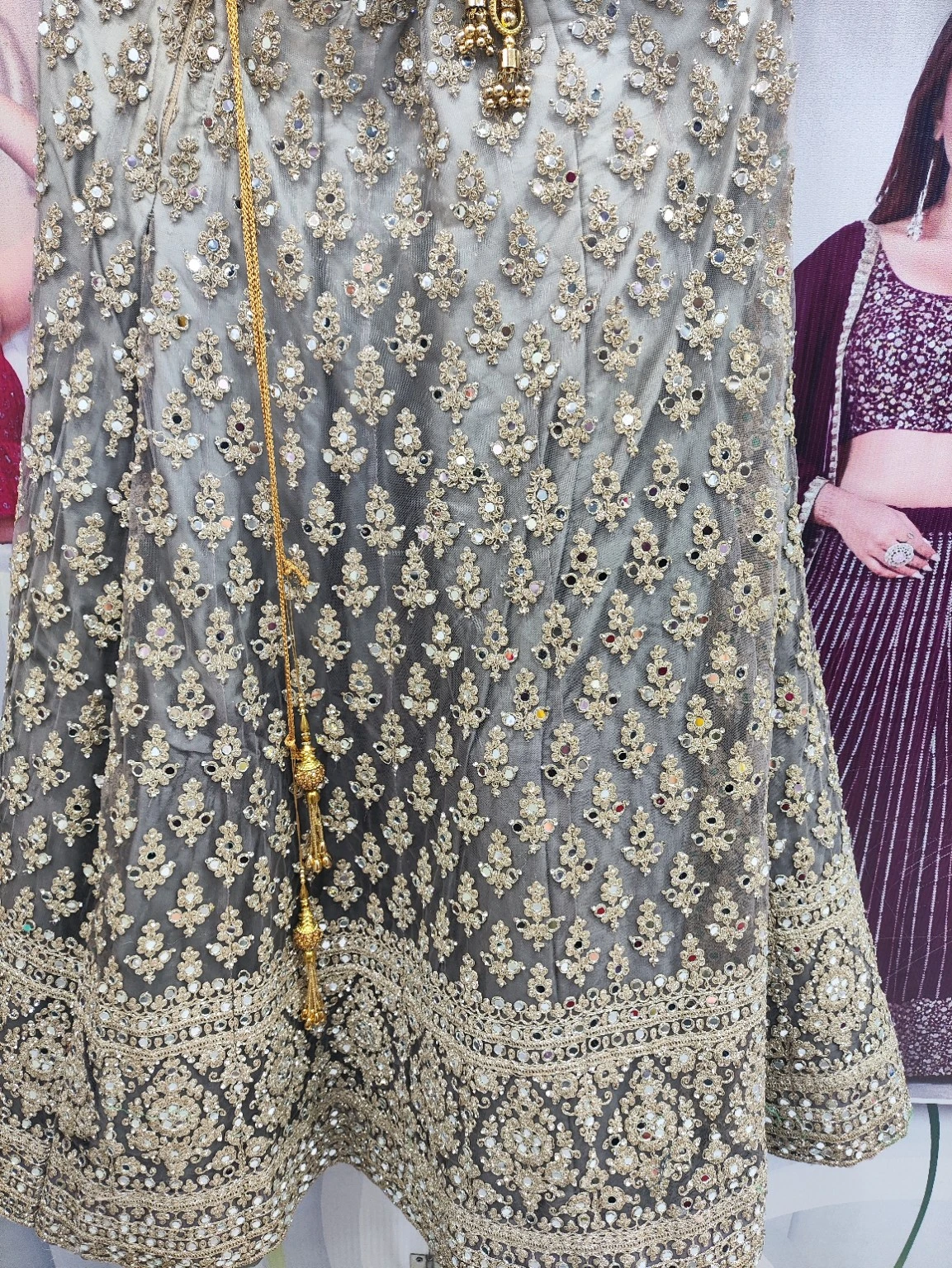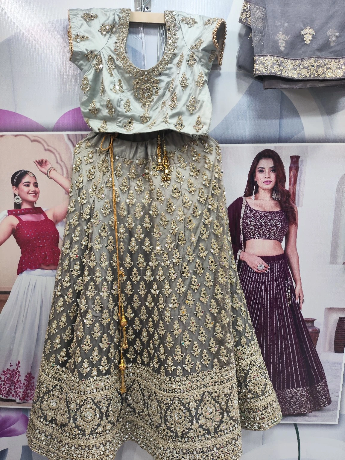 Grey Mirror Work Embroidered Lehenga