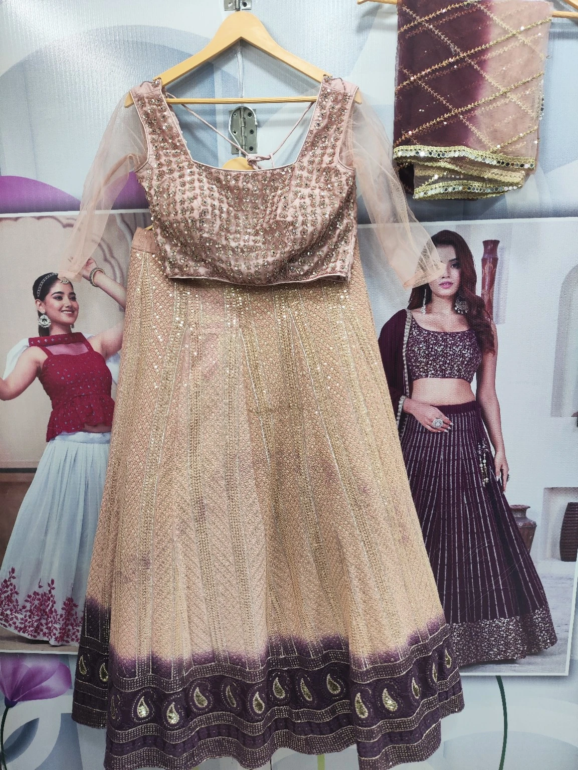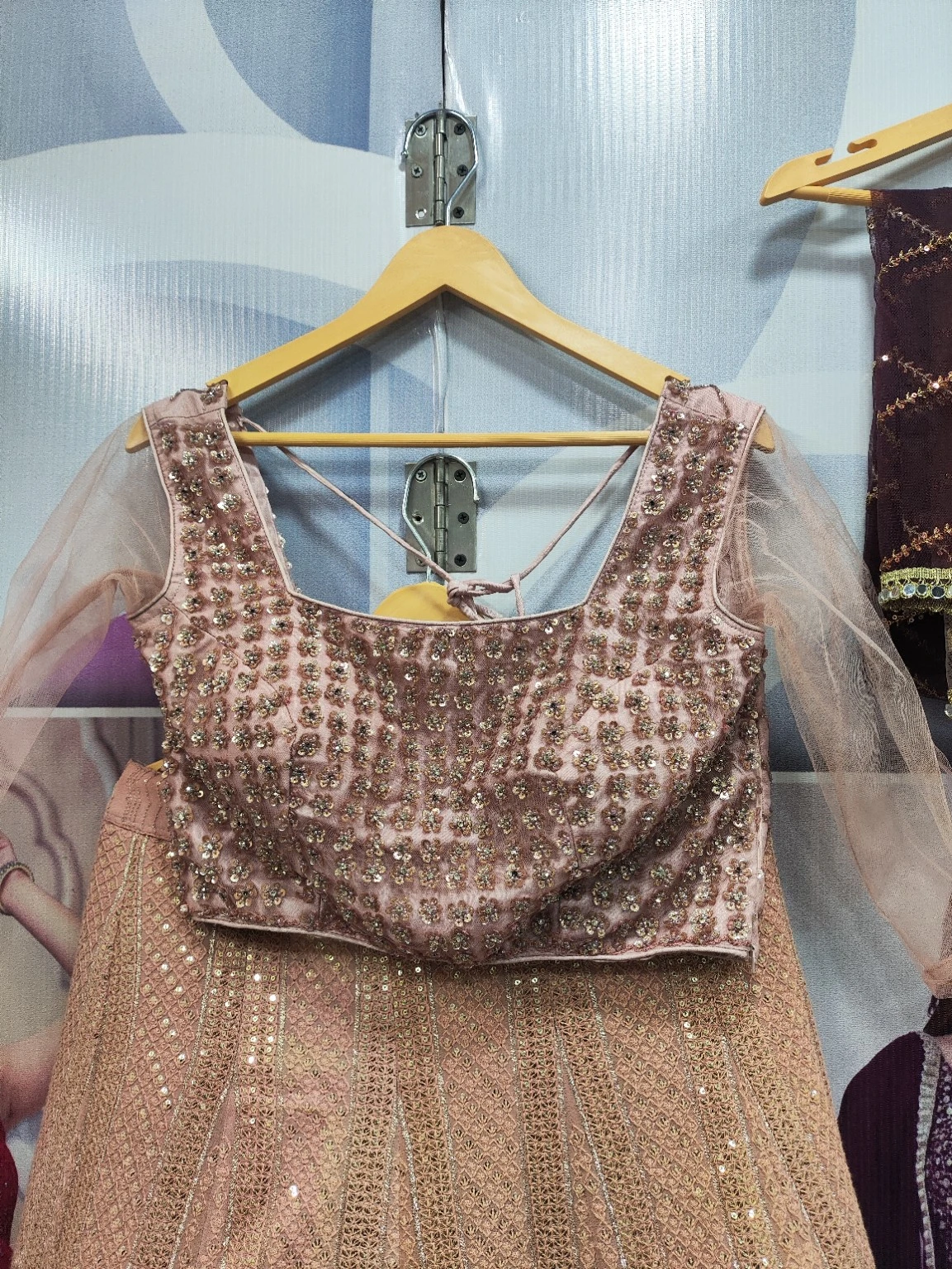 Light Pink Wine Plain Lehenga