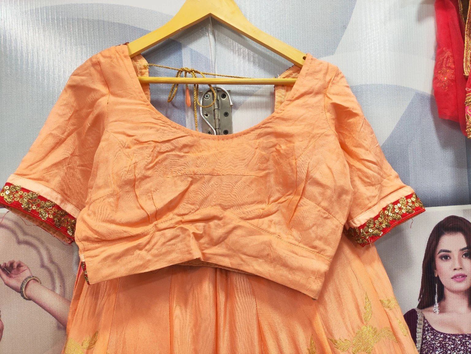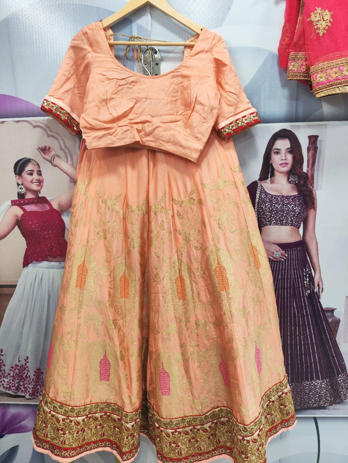 Light Peach Orange Plain Lehenga