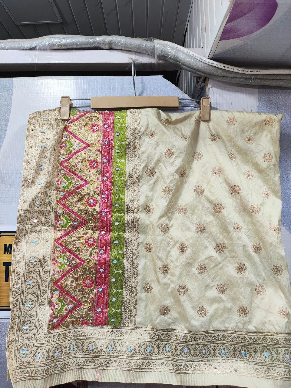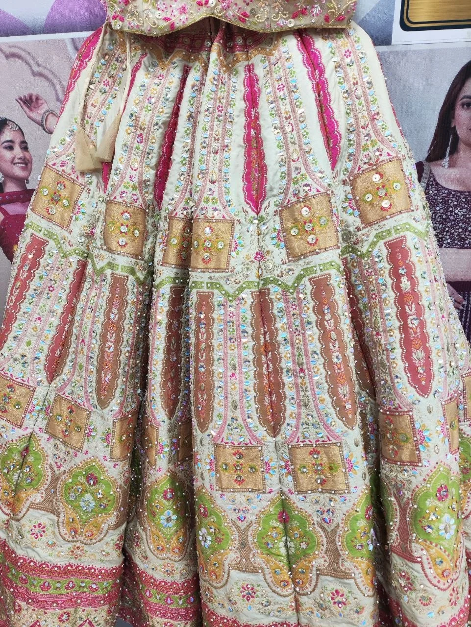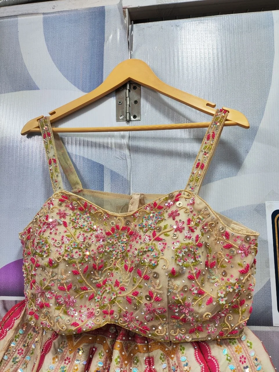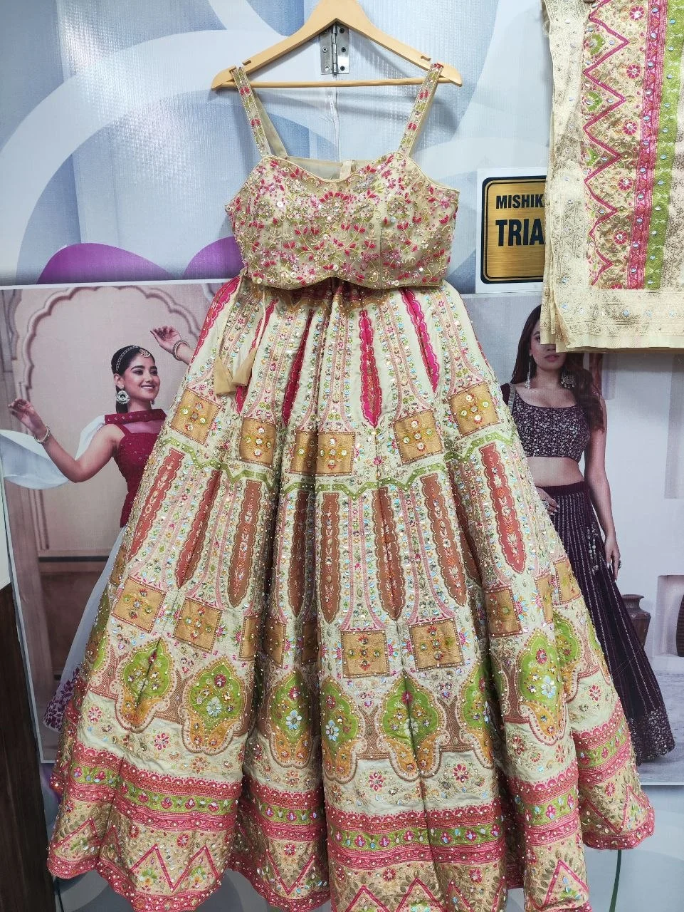 White Base Multi Color Cut Sleeve Lehenga