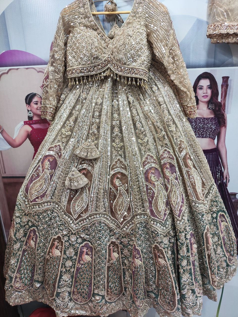 Pastel Beige Stone Work Heavy Embroidered Lehenga